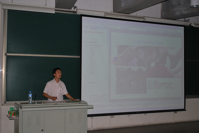 2010年6月17日晚8:30,在B-103教室,永利23411集团面向所有参加昆虫标本大赛的同学举办昆虫标本采集与制作培训课。学院副教授王进忠担任主讲,王教授主要从事昆虫方面的研究。