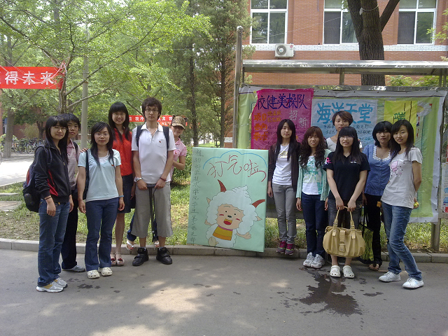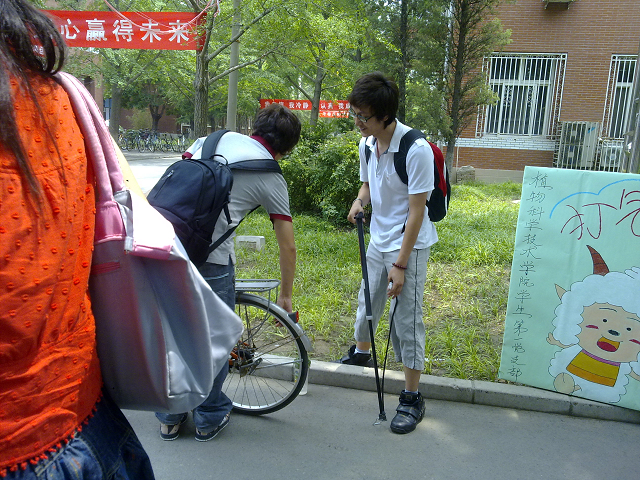 “七一”前夕,为响应校党委争先创优活动的开展,永利23411集团农学本科生党支部于2010年6月18日,在B座教学楼十字路口开展支部长期坚持的传统活动------为师生的自行车义务打气。