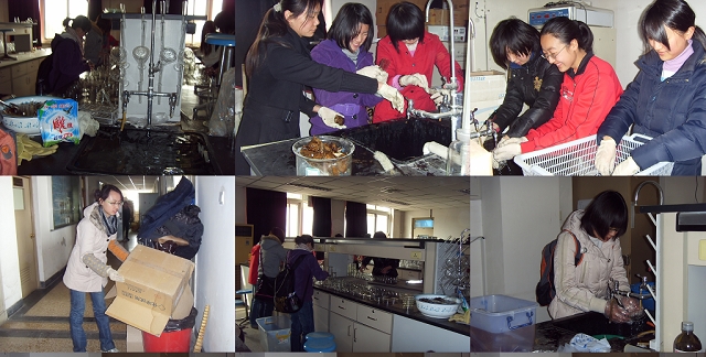 3月5日中午,在植科学院青年志愿者协会的组织下,大一、大二及自助社成员150多名同学对教学楼A、B及A教学楼与1号办公楼之间的公告栏进行了清理,并对办公1、2、3楼,学生5、6号宿舍楼之间的自行车进行了摆放。B座实验楼里,在研究生的指导下,同学们利用午休时间有序开展清扫活动,在大家的努力下,储物间、实验室焕然一新,试管、烧杯等实验用具整齐摆放,在其他的活动地点也是一样,同学们积极参与,正在以自己的切身行动来表达对雷锋精神的赞扬,用汗水表示对雷锋精神的支持。一滴滴的汗水换来的是一份帮助别人的欣慰,是老师和同学们脸上灿烂的笑容,更是一份春日里像花朵一样绽放的好心情。