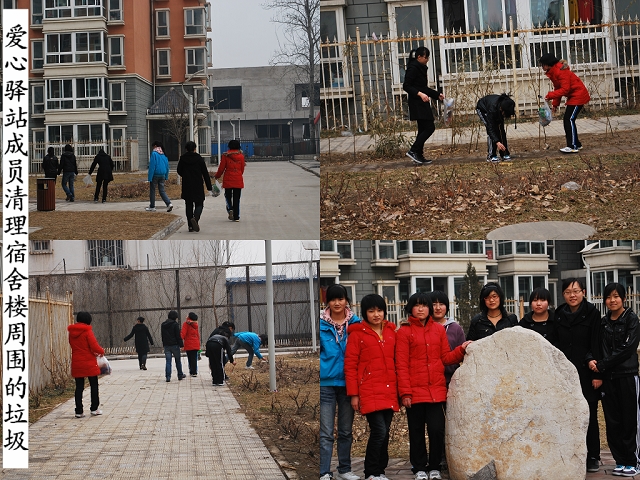 3月4日中午,永利23411集团社团部爱心驿站部分成员利用自己的休息时间,在社长袁金玲的带领下一行八人开展了以“美化环境,服务校园”为目的的义务清洁活动。中午十二点半整,大家准时来到了七号楼门口集合出发。准备捡拾宿舍楼周围的垃圾。天气虽然一直是阴沉沉的,但同学们的热情却很高昂。活动进行的时间虽然不长。但却有着非常深远的意义:不仅美化了校园,使同学们更加热爱学校;也是大家向雷锋学习的一次具体的实践课,使同学们更深切的体会雷锋精神;更能使同学们彼此间有更深入的了解,促进了成员之间的友谊!
