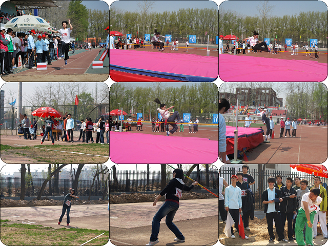 田赛部分,9时30分开始女子标枪赛,腾空的标枪犹如队员们腾飞的希望,最后,我院史丽娜、吴庆云二人不负众望,分别取得决赛第二名、第八名的优异成绩。与此同时,铅球项目也展开了决赛,队员们手中沉甸甸的球寄托着全院师生的期望,当球掷出,空中划出一道优美的弧线,球落地的瞬间,正是成功到来的时刻。女生方面侯齐、高鹤喜得第二、第三,男子铅球陈阳同学获第五名,他们的努力为植科院夺得了宝贵的荣誉。此时,其他比赛都相继进入高潮。女子跳高决赛植科院祝宁、张彦新分别荣获第三、第七。男子学生跳高石帅、袁毅分别获第二、第七名。