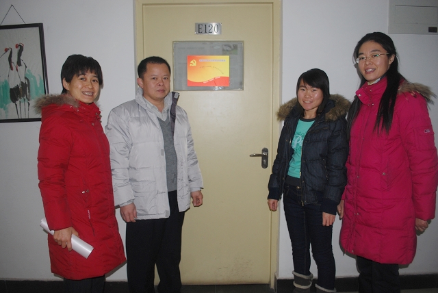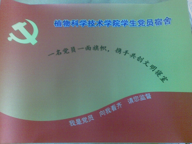 一名党员,一面旗帜,携手共创文明寝室。学校多年来,一直为学生党员宿舍张贴示范牌,以期达到激励学生携手共创文明宿舍,起到先锋模范的带头作用,取得了良好的效果。鉴于学生党员流动性大,宿舍调整周期短,宿舍示范牌也需及时调整更换。植科学院党总支集中开展学生党员宿舍更换示范牌活动,重新制作示范牌,为新党员宿舍张贴示范牌,同时要求非党员同学们及时清理门前宿舍牌,做到统一规范。并于12月8日上午10:00,特别邀请学生处主管学生宿舍工作的郭玉刚、学生处主管党建工作的牟玉荣老师和我院副院长赵金芳、辅导员贾慧敏一起为学生党员宿舍张贴、更换示范牌。