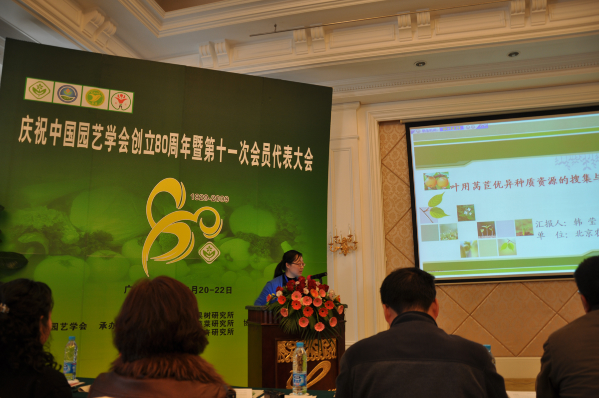 我校参加本次会议的还有植科学院沈元月教授、青年教师沈红香、韩莹琰。其中韩莹琰博士在会上做了《叶用莴苣优异种质资源的搜集和与筛选》的学术报告。