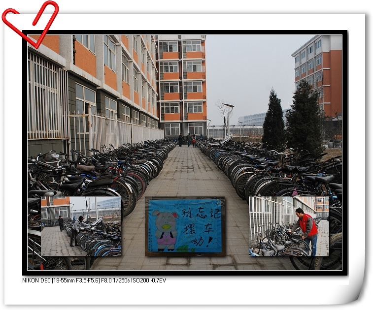 前不久由校学生处、保卫处、团委、后勤集团联合发起了一项活动——清理校园废旧自行车。为给师生创造整洁有序的校园环境,经学校研究决定,对校内长期存放的破旧、无主自行车将予集中清理,而那些能够使用但无人认领的车经修理后发配给贫困生使用。为使校园更加整洁,方便学生出行,植科学院自助社的志愿者们积极报名参加学校组织的自行车有序摆放活动,在几个部门领导老师的组织管理下,活动顺利开展。同学们停放车辆的地方变得宽阔了,也使后来组织摆放自行车的志愿者同学的工作更加顺利。