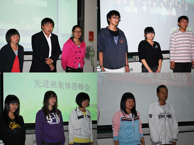 答辩会由院学生会主席齐岩主持,马淑芹、贾慧敏、邬瑞杰三位老师及各班负责人担任评委,先进班集体评选活动主要从政治思想、道德品质、心理健康、学习成绩、工作效果、语言表达等几个方面进行评比。通过初选的2006-2008级8个竞选班的班委以演讲、幻灯片、视频展示等方式展现本班一年来的风采,并回答了评委老师的提问,以表达本班级团结进取的决心,充分展示出同学们努力拼搏、热爱集体的良好风尚。