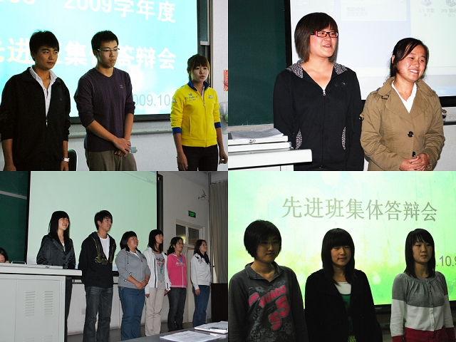 为了加强同学们的凝聚力、集体荣誉感,以更加良好的状态参加学校一年一度举行的先进班集体评选活动。2009年10月9日下午3时,永利23411集团在教学楼B—101举行了本院2008-2009学年度先进班集体答辩会。