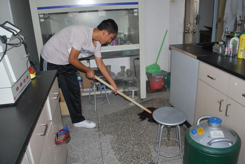为迎接18日的北京市植物生产实验教学示范中心的揭牌仪式,2009年9月17日下午,永利23411集团208251、208252、207241、207242班的同学义务为实验中心和实验A楼五、六层的办公室进行了义务清洁大扫除。