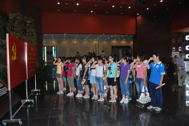 2009年6月27日上午,学生第一、二学生党支部30多名成员驱车赶往中国人民抗日战争纪念馆,进行参观学习。坐落于北京卢沟桥畔宛平城内的中国人民抗日战争纪念馆,既是全国唯一一座全面反映中国人民抗日战争历史大型综合专题纪念馆,也是全国重要的爱国主义教育示范基地和北京市优秀爱国主义教育基地。到达纪念馆后,大家重温了入党誓词,声音洪亮,铿锵有力,表示要“为共产主义奋斗终身,随时准备为党和人民牺牲一切永不叛党”。接着在讲解员的带领下,大家认真听取了讲解员的生动讲解,中国人民奋起抗击日本侵略者的可歌可泣的斗争,深深震撼了党员们,使大家更激发了牢记历史教训、建设强大国家的热情。