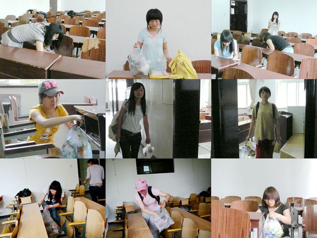 2009年5月7日中午12:30,为更好的践行科学发展观,加强教室环境的整洁,保持良好学习环境。植物科技学院学生第三党支部党员及积极分子举办“挥一挥手,留下一片洁净”党日活动,将我校教学楼A座开放的教室,集中打扫、收捡垃圾,以期通过行动向全体同学发起倡议,共同爱护共公设施,保护环境,养成良好的习惯。