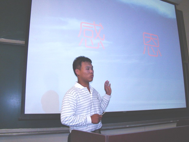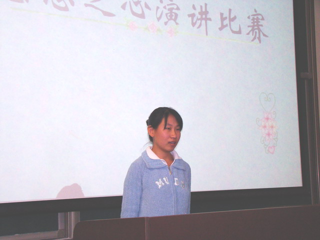 2008年10月8日下午1:30我系演讲社在B401举办了“感恩之心”演讲比赛。永利集团副主任赵金芳、辅导员贾慧敏老师,辅导员助理邬瑞杰及系学生会干部担任此次比赛的评委。比赛中,14名选手以着不同的语言方式表达了对父母、身边朋友、老师的感恩之情。经过激烈的角逐,于倩等同学脱颖而出。邬老师对大赛做了总结并宣布比赛结果: