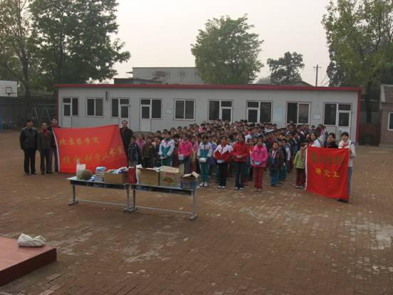 2007年11月7日下午,植科系研究生原第二党支部书记、校研究生主席及支部党员代表一行7人,到北京市海淀区行知实验学校进行“走进知行、奉献爱心”捐助活动。行知实验学校的刘校长热情地接待了同学们,并介绍了学校的建设情况: 该校是一所打工子弟小学,已有十多年的校史,曾辗转于北京各个地区,现位于北京市海淀区田村半壁店双槐树村。学校已经通过海淀区教委的审批,正规办校。孩子们在学校老师的爱心呵护下健康成长,父母们也因此减轻了很大负担,可以让他们安心的工作。