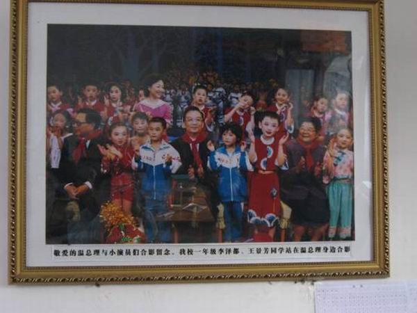校长很高兴的介绍了孩子们与国家机关幼儿园的小朋友一起表演节目并与温家宝总理的合影
