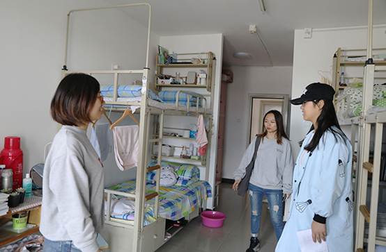 首先,老师们去往学生公寓九号楼抽查了部分男生卫生、宿舍安全情况。其中,大部分宿舍安全意识比较高,室内整洁。但也有些宿舍还需要整改,如,宿舍物品堆积杂乱、没有及时断电等。接着,郝娜、杨韫嘉、贾慧敏三位老师抽查学生公寓七、八号楼的女生宿舍,女生宿舍的卫生、安全情况整体良好。