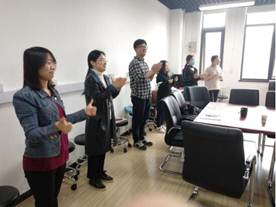 沙龙以两个热身活动开始。首先是所有人围成圈,自我介绍并且说明参加沙龙想得到的收获然后做一个专属自己的动作;其次是拍拍操。冯静老师由此引出主题,询问大家的收获,她说这些动作可以让大家内心多一份大度。