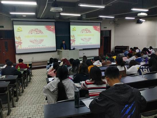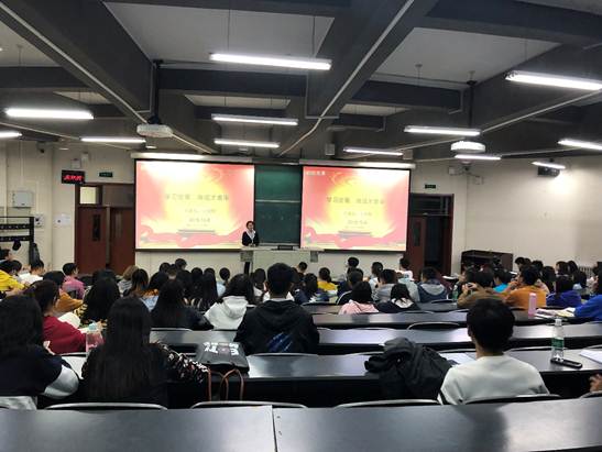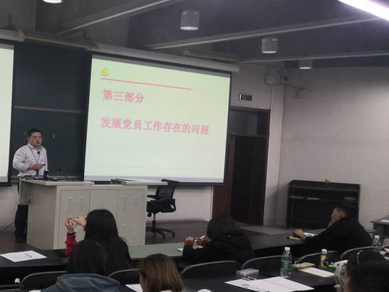王绍辉老师于10月8日以“学习党章,做成才表率”为主题展开了叙述。王书记围绕党章的修订,讲述了党史党规,同时她结合了自身经验教导学员们在理论、政治、道德、纪律、作风方面提高党性修养并且要求入党学生保持入党动机的纯洁性,在修德和修身上践行对党忠诚、敢于担当的核心思想。