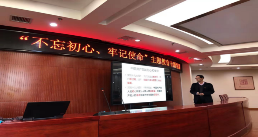 2019年10月31日上午10点,根据学校“不忘初心、牢记使命”主题教育工作安排,永利23411集团在图书馆303室召开“不忘初心,牢记使命”主题教育专题党课。党委书记杨军同志到会指导,永利23411集团党支部书记王绍辉,党总支副书记、院长潘金豹以及永利23411集团全体教师党员和部分学生党员代表参加了此次党课。