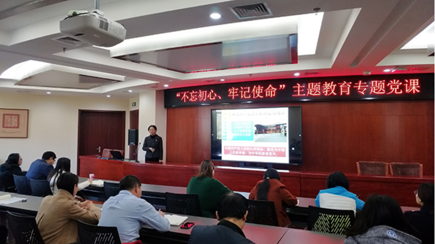 随后,潘金豹院长以“不忘初心,践行使命”为题,为党员们介绍了中国共产党的初心和使命,其中提到毛泽东思想指引党实现了中华民族站起来的使命,邓小平理论指引党实现了中华民族富起来的使命,习近平新时代中国特色社会主义思想指引党实现中华民族强起来的使命,希望党员们牢记中国共产党的初心和使命。潘金豹老师同时强调了主题教育活动的重要意义,希望教师能够认真履行自己的职责和使命,围绕学院的重点工作,发挥党员的模范先锋作用,建设和谐美丽植科。