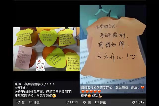 2019年12月11日,距离2020届考研仅有十日,永利23411集团为此刻正在认真奋斗的大四学子进行了鞭策和鼓励,并送上甜美的橙子表示祝福。