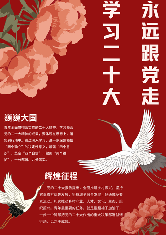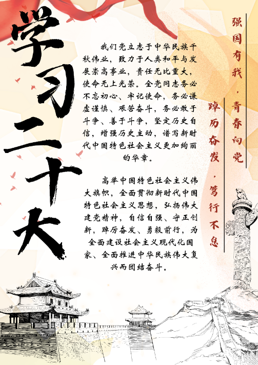 从作品的设计上充分体现了参赛学生对党的二十大精神的理解和感悟,同时兼具创新性和设计感。本次比赛的获奖作品将发放到学院各团小组进行展示和学习,让更多的青年学生学习党的二十大精神,立志做有理想、敢担当、能吃苦、肯奋斗的新时代好青年,让青春在全面建设社会主义现代化国家的火热实践中绽放绚丽之花。