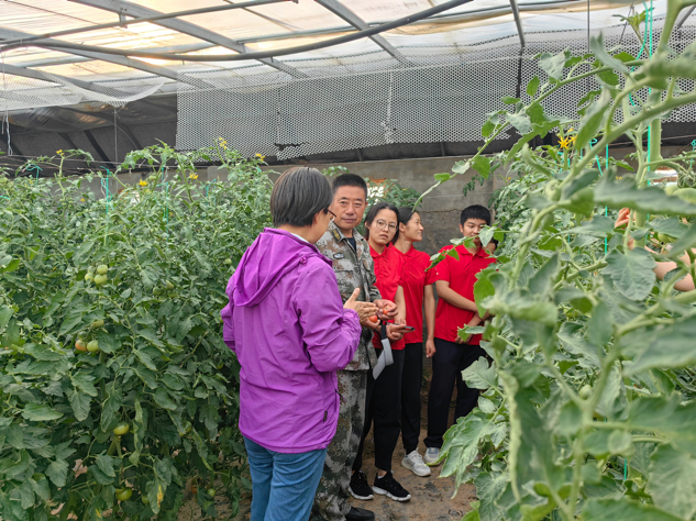 实践团第一站到达了尚义县红色示范村十三号村。在十三号村姜万河书记的带领下,师生们参观了现代农业园区种植的水果番茄和万寿菊。在种植水果番茄的大棚里,王绍辉教授发现大部分番茄脐部有黑色病变,凭借多年的教学和科研经验,确定番茄植株缺钙导致脐腐病的发生,并对该病如何预防与治疗提出了详细的技术指导方案。