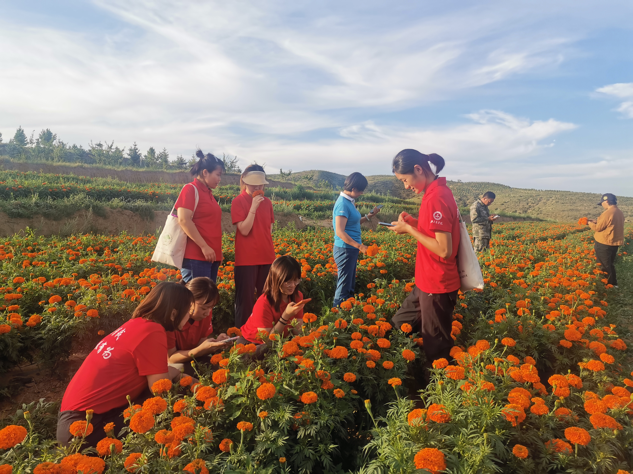 在进行番茄诊疗后,姜书记带领实践团来到了园区的万寿菊花海。在热烈绽放的花海之中,实践团了解了当地发展万寿菊精油提取的相关规划和当前面临的问题。为帮助解决当地精油的发展遇到的问题,实践团将邀请我校相关专家前往当地进行调研,帮助解决精油产业发展目前所面临的问题,带动当地经济发展。