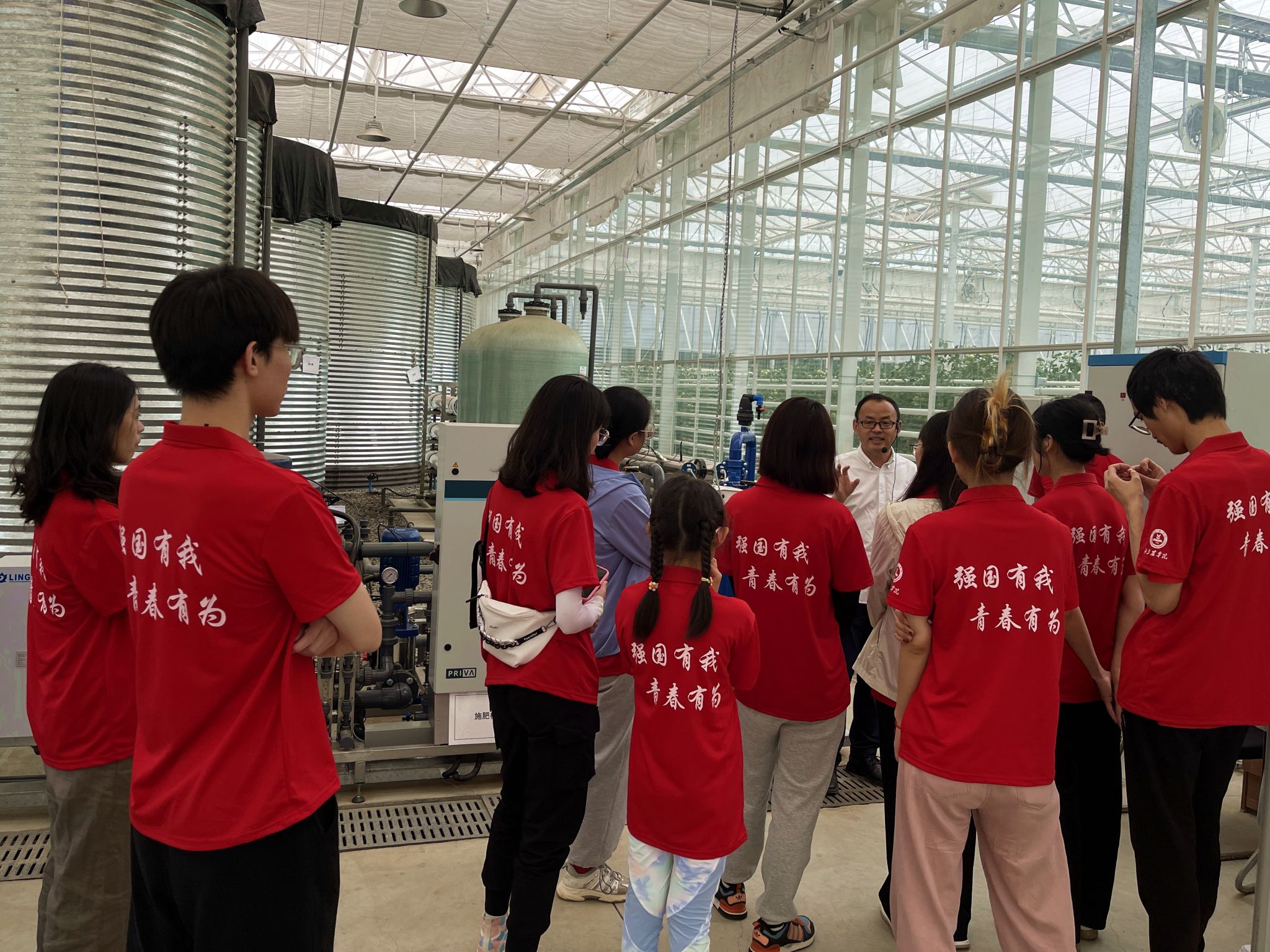 实践团参观京瓦中心现代果业和设施园艺分中心。负责人代明亮带领实践团实地参观两个分中心,详细讲解了分中心的发展思路和建设情况,并寄语实践团成员,“我们这一代青年一定要扎实学习专业技能,农业的现代化就掌握在我们手中,责任重大”。