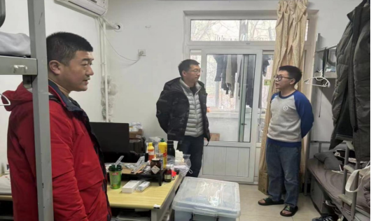 寒假将至,为切实做好放假前安全工作,创建整洁文明的宿舍卫生环境,引导学生营造良好的生活环境,1月18日上午,永利23411集团党委副书记、副院长张卿,研究生辅导员杨韫嘉、本科生辅导员李敬玉及学生干部对学生宿舍进行检查。