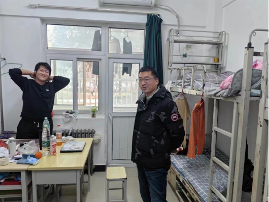 张卿深入宿舍,检查各项情况,并与学生恳谈交流,了解同学们近期生活和学习情况。亲切叮嘱离校同学注意离校与返校途中的交通安全,留校同学则应注意留宿安全问题。