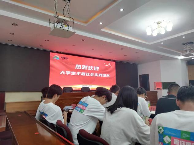 王斌书记首先发表了热情洋溢的致辞,他对远道而来的实践团成员们表示了由衷的欢迎,并向他们详细介绍了大华山镇的历史文化、经济发展和社会状况。王书记还带领大家回顾了去年社会实践活动的精彩瞬间,同时展望了未来合作的美好愿景。