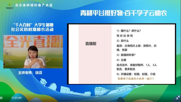 此次培训主要分为“短视频”和“直播”两大部分,主讲老师徐滔老师为同学们展现了优秀助农短视频和直播案例,以“性、价、比、快、吃”五个方面讲解如何“短”和“精”的抓住农产品亮点,解析拍摄技巧和分镜艺术,指导热门脚本的撰写,从而制作普罗大众所喜爱的带货短视频。针对直播技巧,更是强调了播前、播中和播后三个重要时间段的准备工作,明确播什么、卖什么、摆什么和说什么问题。