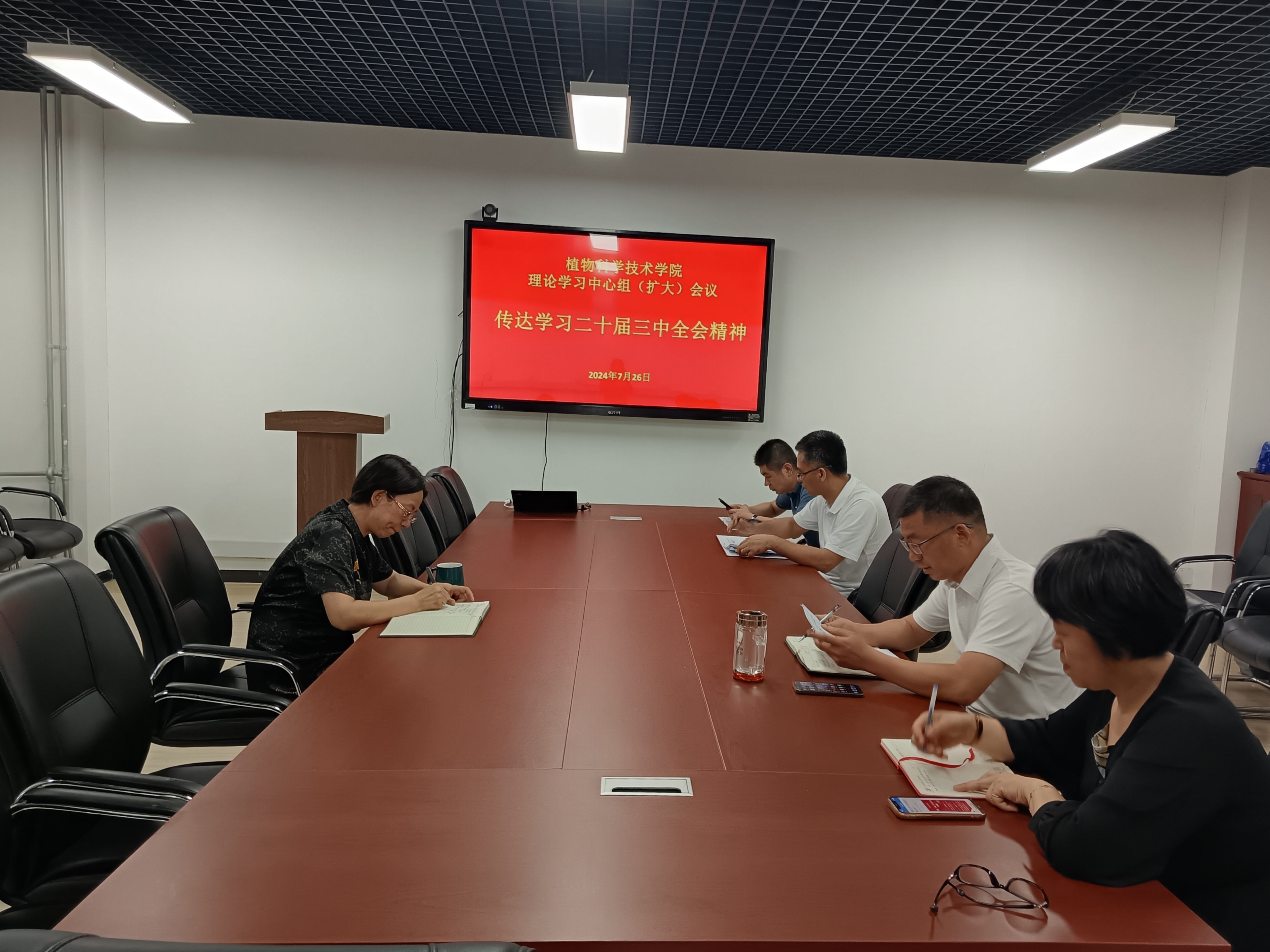与会人员共同学习了《中国共产党第二十届中央委员会第三次全体会议公报》、《中共中央关于进一步全面深化改革、推进中国式现代化的决定》及“习近平总书记关于《中共中央关于进一步全面深化改革、推进中国式现代化的决定》的说明”等内容,并逐一分享了对习近平总书记在党的二十届三中全会上的重要讲话精神和全会精神的理解和认识。