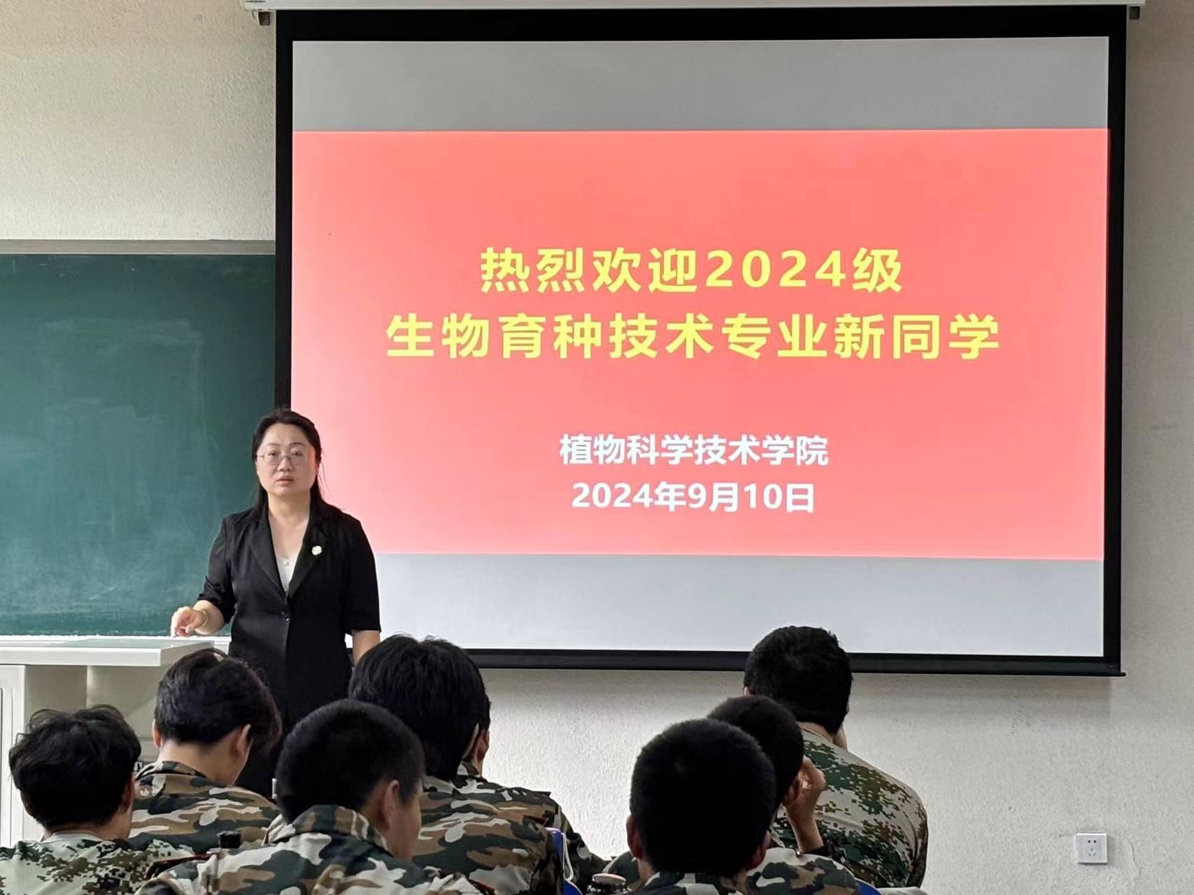 韩莹琰介绍了生物育种技术专业的设置背景、专业概况、人才培养要求、师资队伍和科研平台情况,指出本专业以国家农业和北京市现代化种业发展对人才的需求为导向,围绕新农科建设的基本要求,着力夯实植物种质资源创新、分子设计育种、基因编辑等现代育种理论基础与前沿技术,勉励同学们认真学习,提前做好专业学习规划,努力成为生物育种领域的高素质专门人才。