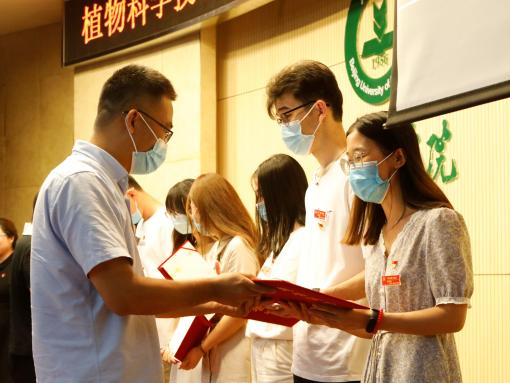 牛奔、张杰、韩莹琰老师为学生优秀共产党员颁发荣誉证书。