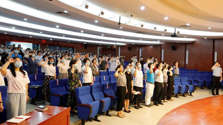 为庆祝中国共产党成立100周年,扎实推进党史学习教育,增强基层党组织政治功能和组织力,进一步激励全院党员师生履职尽责、敢于担当、主动作为,以优异成绩迎接建党100周年。永利23411集团党总支于2021年6月30日下午15:30在图书馆报告厅召开庆祝建党100周年党员大会。学院全体党员参加会议,会议由党总支副书记牛奔老师主持。