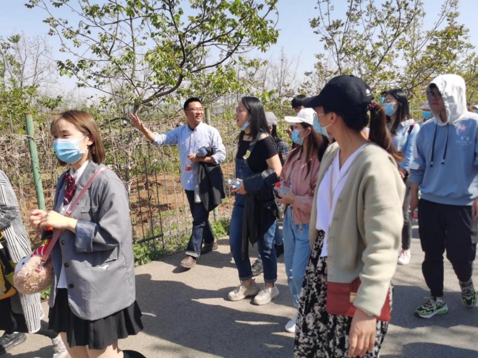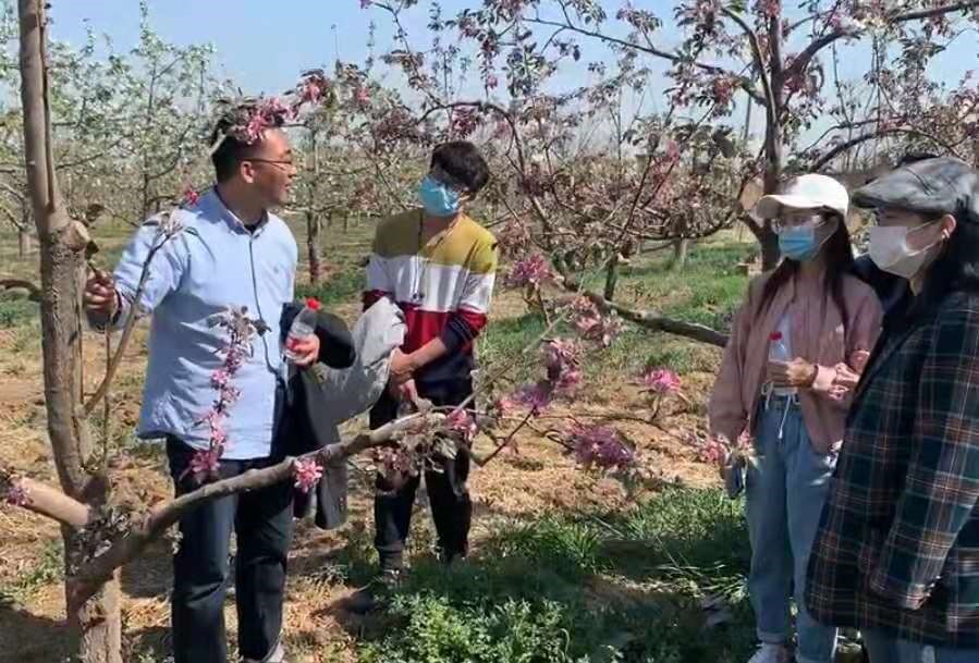 张杰老师介绍了小院内现代矮化栽培苹果树的特点,结合真顺村果园现状,提出了许多独到的见解。针对真顺苹果由最初脱销到现在疫情影响导致滞留,指出开展优新品种引进,丰富种植结构,创建真顺苹果品牌,拓宽营销的发展思路。同学们对苹果栽培模式、常见的腐烂病和脱皮病,以及不同时期如何管理果园,提升果实品质有了深入的了解。“满树花半树果,半树花满树果”,果树开花太多,反而产量较低,通风透光、保证苹果园的生态群落也是管理果园的重要因素。张杰老师强调加强果园管理,增强树势,提高树体营养水平是减轻落花落果的关键,同时针对落花落果的情况,介绍了许多有效措施。