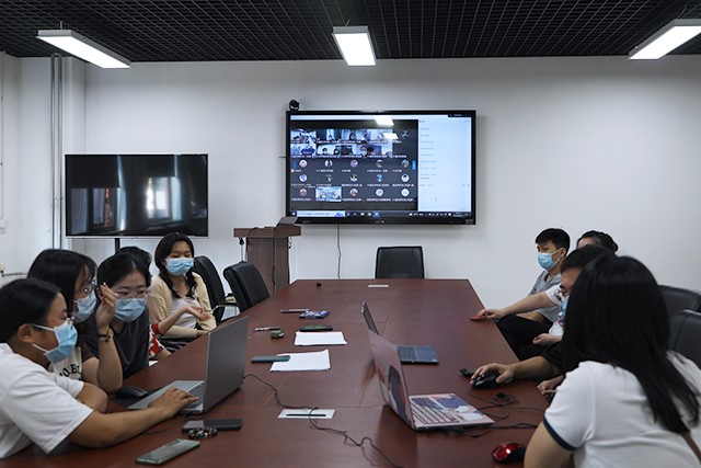 竞赛通过腾讯会议线上同步,主赛场连线3个分赛场的形式开展,来自11支队伍的参赛队员分别到主赛场和分赛场开展竞答,各党支部师生党员通过腾讯会议观看比赛。