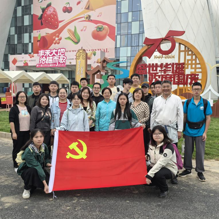为庆祝中华人民共和国成立75周年,深入学习贯彻党的二十届三中全会精神、全国教育大会精神,9月28日,永利23411集团教师党支部联合学生开展了“增强爱国情怀 激发学习动力”的主题党日活动。在北京农业嘉年华投资管理有限公司的协助下,学院共30余名师生来到北京农业嘉年华开展现场教学参观与调研交流。