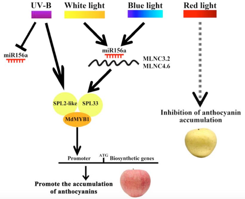 2019年7月25日,永利23411集团姚允聪教授/田佶教授在The Plant Journal在线发表了题为“Systematic identification of long non-coding RNAs expressed during light-induced anthocyanin accumulation in apple fruit”的研究论文。该研究分析了苹果果实中长链非编码RNA (lncRNA)在花色素苷生物合成中的潜在作用,阐述了miRNA156a的decoy lncRNA参与果皮色泽形成的调控新机制。