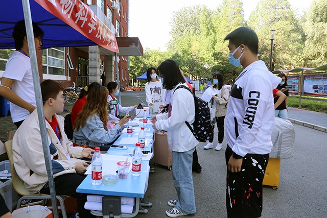 秋高气爽,温暖迎新。2021年9月7日早上7点,永利23411集团21级班主任、团学组织成员、21级年级组长、各班班助到达科技楼A202进行准备工作。七点半永利23411集团志愿者开始迎接今天报道的本科新生。