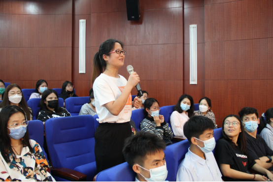 报告会现场气氛热烈,学生们纷纷举手与陶医生交流并分享感受。许胜男同学向陶医生表达了敬佩之情:“我很佩服您在经历这么严重的事情后,依然能重新站起来,积极面对生活,就像您所说的那样向光而行,并且找寻到一条更加出色的道路。”