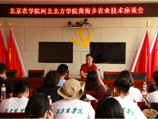 下午,两校两院联合实践团队驱车到达黄梅乡人民政府,开展yl23411永利集团、河北北方学院黄梅乡农业技术座谈会。陈乡长首先向参会人员介绍当地的杏扁种植和经济发展情况,并向两校专家讲述在杏扁种植过程中所遇到的主要问题。yl23411永利集团果树专家董清华老师和王建文老师向相关负责人进行农业种植技术指导,蔚县杏扁种植前景广阔。