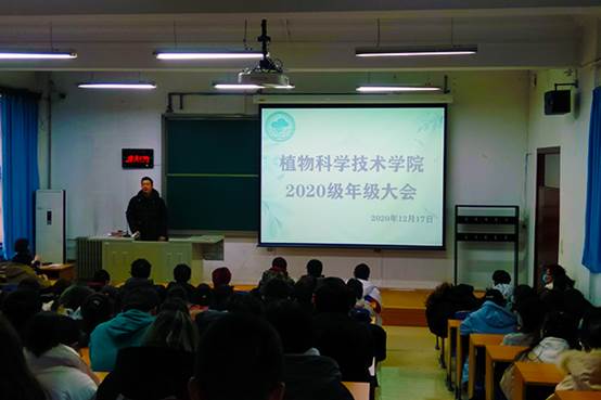 2020级年级大会于2020年12月17日下午1:30在教B302召开。首先,牛奔老师对大一新生进行诚信教育,不能违反校规校纪,严格遵守学校学院关于学生管理的相关规定,严格按照请假流程申请离校。建议大一新生做好学习规划和职业生涯规划,提高英语及基础课能力水平。随后,贾慧敏老师说了两点,一是纪律,即遵守校规校纪法律法规,先做人后做事。二是规划,有底气有目标。贾老师提到要处理好与父母、老师、同学的关系,强调注重宿舍安全,网络安全等问题。她建议同学们要发展自己的特长,学习与文体活动共同发展。最后,她还例举几位优秀毕业生的案例,2020级学生们信心满满。
