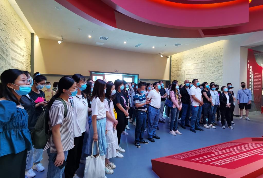 然后,由纪念馆工作人员带领大家参观了没有共产党就没有新中国纪念馆。纪念馆以“人民的心声 历史的旋律”为主题,设有一个“不忘初心 砥砺奋进”专题和“赤潮涌动 唤起工农”、“革命歌谣 燎原星火”、“抗日战歌 波涛汹涌”、“解放战争 摧枯拉朽”四个部分,均以党史为主线,展示200余首革命歌曲,以歌曲阐述党史,以歌曲背后的故事折射党史历程。