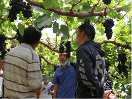 蔚县长宁乡安庄是杏扁主产区,也是蔚县杏扁主栽品种‘优一’母树的所在地,实践团现场考察了当地杏扁种植基地情况,发现杏扁种植管理相当粗放、栽培管理技术比较落后、病虫害现象十分普遍。青年教师张卿针对出现的树体管理和病虫害问题,现场展开教学和技术指导,为当地果农分析杏扁种植过程出现的问题,并提供了解决的措施。实践团还深入葡萄种植户交流设施葡萄栽培管理技术,并为学生教授葡萄种植、嫁接、修剪等技术。