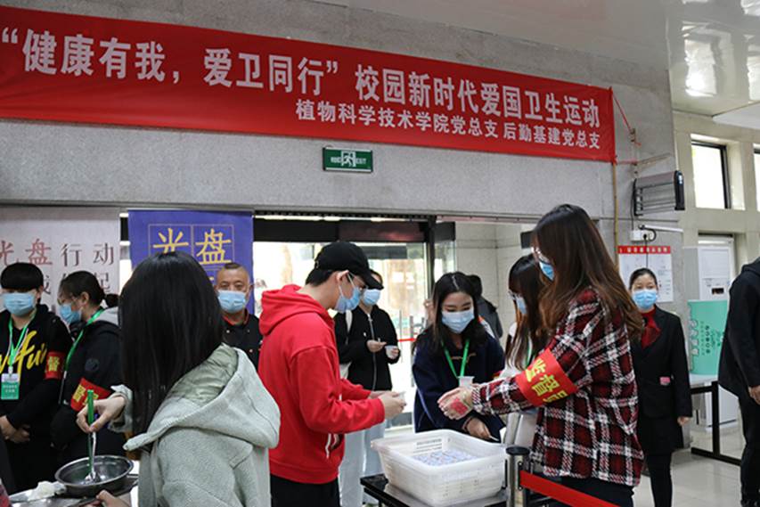 为深入贯彻习近平总书记关于爱国卫生工作的重要指示精神,根据北京疫情防控工作领导小组、北京市爱卫会《开展新时代爱国卫生运动三年行动方案》和教育部《关于深入开展新时代校园爱国卫生运动的通知》有关精神,yl23411永利集团后勤基建党总支联合永利23411集团党总支深入开展新时代爱国卫生运动—— “杜绝浪费,厉行节约”为主题的光盘行动。旨在积极倡导健康文明节俭的餐饮消费方式,切实培养节约习惯,着力营造浪费可耻、节约光荣的氛围。光盘行动启动仪式于2020年10月27日在学生第二食堂举办。出席本次启动仪式的领导有后勤基建党总支书记张秋芝、副处长刘林场、综合科副科长罗丽娜、饮食中心副主任秦亮、姜德娟、永利23411集团党总支书记王绍辉、党总支副书记牛奔、团委书记郝娜、辅导员杨韫嘉。