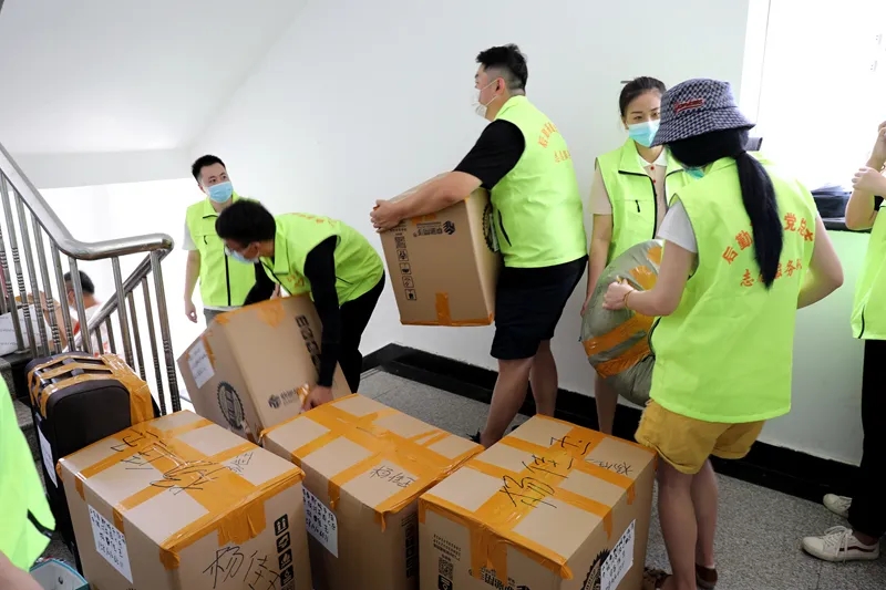 由衷感谢后勤基建党支部组建的志愿服务队对我院2020届毕业生离校工作的支持!7月7日我院2020届毕业生返校,时间紧、邮寄任务重。一上午近百个箱子挤压在宿舍楼道,行李邮寄工作进展缓慢。身穿绿色荧光马甲的后勤志愿服务队火速支援,炎热的天气,沉重的行李,挡不住服务队一趟趟搬运的步伐。正是因为有你们的帮助,使得这个毕业“寄”含温度,有速度!在此,致上植科学院全体人员的敬意,谢谢大家的帮助!