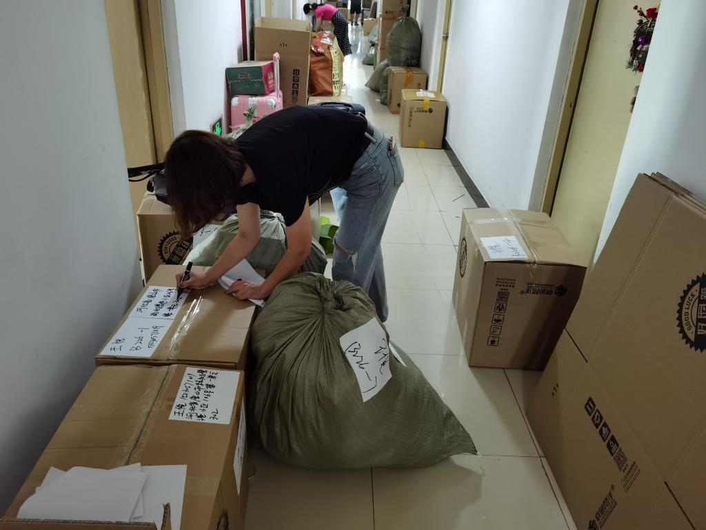 在学生处、后勤基建志愿服务队、公寓工作人员的协同下,有序地推动了毕业生行李打包工作,大大提高了邮寄的效率。他们不顾天气炎热、忙碌于校园的各个角落,为毕业生提供最好的服务。