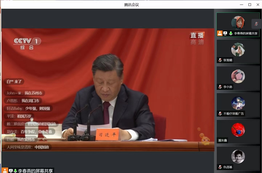 永利23411集团团委组织28个团支部收看庆祝大会直播并召开支部大会学习讲话内容。会后,学院团委书记郝娜带领团学干部认真学习习近平总书记在庆祝大会上的重要讲话,大家积极发言交流自己的心得体会。