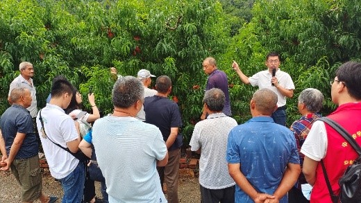 为提升大桃夏季管理水平,实践团专业教师针对大华山镇大桃夏季栽培管理和病虫害防治存在的问题开展实用技术培训。永利23411集团果树专家张卿和王志忠结合大桃主干型和开心形树形讲解大桃夏季管理的技术要点,建议大桃种植户要抓住大桃花芽分化的关键时期,通过夏季整形修剪改善树体结构和调控营养分布,提高花芽分化质量,为第二年的优质高产奠定基础。植保专家魏艳敏和郭洪刚分别针对大桃夏季病害和虫害进行详细讲解,重点培训了大桃细菌性黑斑病、穿孔病、炭疽病、流胶病和梨小食心虫、蚜虫、蜗牛等病虫害的绿色防控技术。为优质精品大桃高标准生产提供依据,实践团师生在苏子峪大桃生产基地取土壤样品,并带回实验室测定土壤有机质和矿质元素含量。全镇30余名大桃种植户参加培训并表示,本次培训针对性、目的性和实用性强,内容贴近生产实践,措施可行易操作,收获很大。