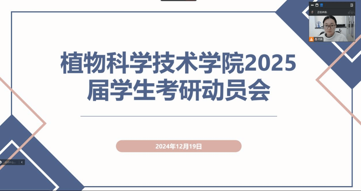 为帮助考研学子坚定备考信心,缓解考试压力,鼓舞备考士气,促进学院学生高质量就业。12月19日,永利23411集团举办2025届学生考研动员会。会议由植科学院辅导员代蕊主持。